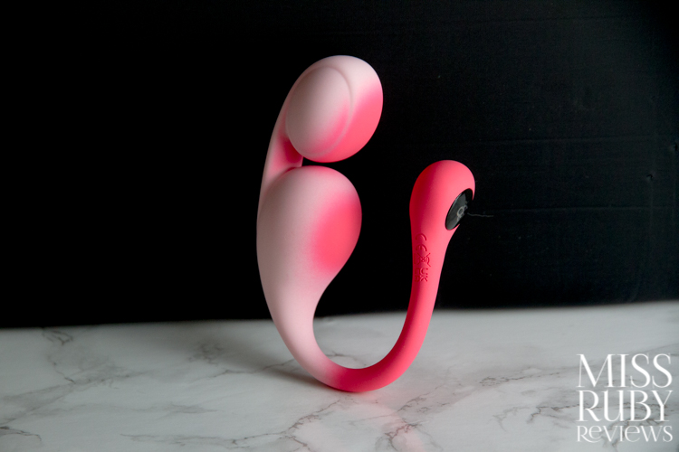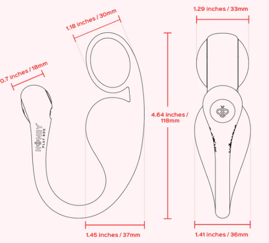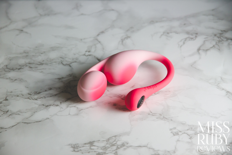 The Vibrosa has two balls, each with its own independently controlled motor. These go inside your body, and outside lies the “tail.” The tail has a physical button to turn it on, but the rest can be controlled via the Honey Play Box App.