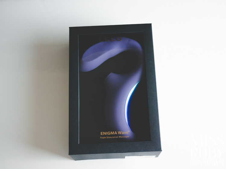 The LELO Enigma Wave is packaged beautifully in a sleek black box with gold accents. As with all of LELO’s products, the packaging feels luxurious. The Enigma Wave can be seen through a clear window on the front.